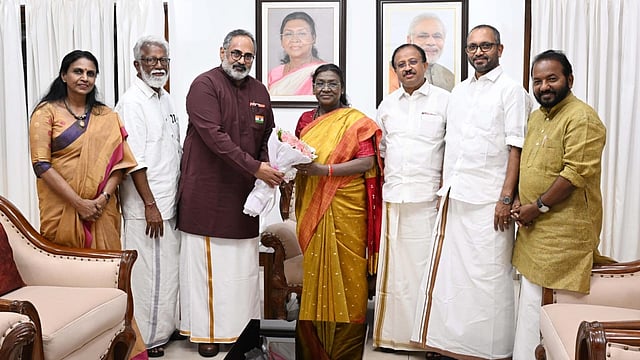 ബിജെപി ദേശീയ നിര്വാഹക സമിതിയംഗം കുമ്മനം രാജശേഖരന്, മുന് കേന്ദ്രമന്ത്രി വി മുരളീധരന്, മുന് സംസ്ഥാന അധ്യക്ഷന് കെ സുരേന്ദ്രന് അടക്കമുള്ളവരും സംഘത്തിലുണ്ടായിരുന്നു. കൂടിക്കാഴ്ച്ചയില് രാഷ്ട്രപതിക്ക് അനന്തപദ്മനാഭസ്വാമി മാതൃകയും ബിജെപി സംഘം സമ്മാനിച്ചു.