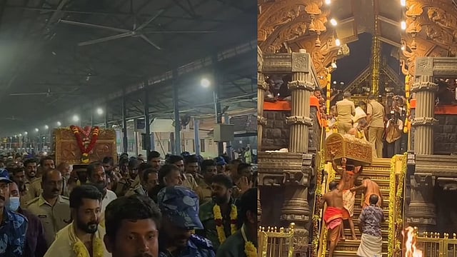 ഘോഷയാത്രയോടനുബന്ധിച്ചു പമ്പയിലും സന്നിധാനത്തും ഭക്തര്ക്ക് നിയന്ത്രണം ഏര്പ്പെടുത്തിയിരുന്നു. ദീപാരാധനയ്ക്ക് ശേഷമാണ് തീര്ത്ഥാടകര്ക്ക് പ്രവേശനം അനുവദിച്ചിരുന്നത്. നാളെ രാവിലെ 10.10 നും 11 30 നും മദ്ധ്യേയുള്ള സമയത്ത് തങ്കയങ്കി ചാര്ത്തി മണ്ഡല പൂജ നടക്കും.