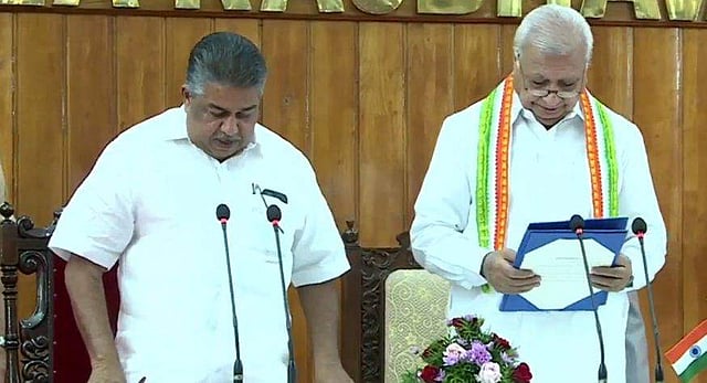 തിരുവനന്തപുരം: സജി ചെറിയാന് വീണ്ടും മന്ത്രിയായി സത്യപ്രതിജ്ഞ ചെയ്തു. രാജ്ഭവനിലെ ഓഡിറ്റോറിയത്തില് നടന്ന ചടങ്ങിലായിരുന്നു സത്യപ്രതിജ്ഞ. ഗവര്ണര് ആരിഫ് മുഹമ്മദ് ഖാന് സത്യവാചകം ചൊല്ലിക്കൊടുത്തു.