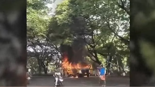 ബസിന്റെ മുന്ഭാഗത്ത് നിന്നാണ് തീ ഉയര്ന്നത്. ബസ് പൂര്ണമായി കത്തിനശിച്ചു. മിനി ബസിന് തീപിടിക്കാനുള്ള കാരണം സംബന്ധിച്ച് ഫയര്ഫോഴ്സ് അന്വേഷണം ആരംഭിച്ചിട്ടുണ്ട്. പൊലീസും മോട്ടോര് വാഹനവകുപ്പ് ഉദ്യോഗസ്ഥരും സ്ഥലത്തെത്തിയിട്ടുണ്ട്. വലിയ തിരക്കുള്ള ഭാഗത്ത് വച്ചാണ് ബസിന് തീപിടിച്ചത്.