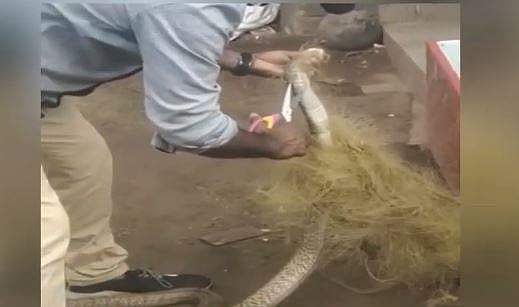 സന്തോഷ് കുമാര്‍ വലയില്‍ കുടുങ്ങിയ പാമ്പിനെ പിടികൂടാന്‍ ശ്രമിക്കുന്നു, വീഡിയോ സ്‌ക്രീന്‍ഷോട്ട്