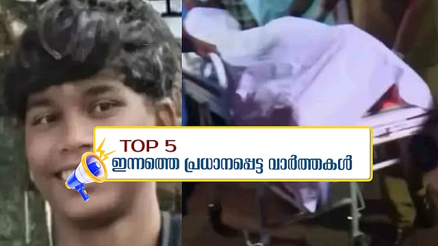 നിലമ്പൂരില് പന്നിക്കെണിയില് നിന്നു ഷോക്കേറ്റ് വിദ്യാര്ഥി മരിച്ചു. പത്താം ക്ലാസ് വിദ്യാര്ഥി അനന്തു(15) വാണ് മരിച്ചത്. വഴിക്കടവ് വെള്ളക്കട്ടയില് ഇന്നലെ രാത്രിയോടെയാണ് സംഭവം. രണ്ട് പേര്ക്ക് പരിക്കേറ്റു. ഇന്നത്തെ 5 പ്രധാനവാർത്തകൾ ( Top 5 News Today ) ചുവടെ