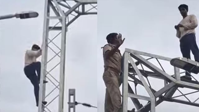ഒരുമണിക്കൂറോളം പരിശ്രമിച്ചാണ് ഇയാളെ താഴെയിറക്കിയത്. കൊല്ലം ചടയമംഗലം സ്വദേശിയാണ് യുവാവ്. അങ്കമാലിയില് എത്തിയത് എന്തിനാണെന്നത് അടക്കമുള്ള കാര്യങ്ങളില് അന്വേഷണം നടത്തിവരികയാണ്.