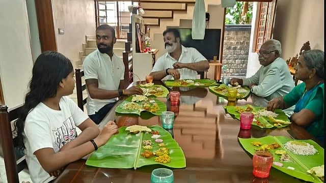 തിരുവനന്തപുരം: ഒളിംപിക്സ് ഹോക്കിയിലെ വെങ്കല മെഡല് ജേതാവും മലയാളിയുമായ പിആര് ശ്രീജേഷിനും കുടുംബത്തിനും സദ്യയൊരുക്കി കേന്ദ്രമന്ത്രി സുരേഷ് ഗോപി. സ്വന്തം വീട്ടിലാണു സുരേഷ് ഗോപിയും ഭാര്യ രാധികയും ശ്രീജേഷിനു സദ്യയൊരുക്കിയത്.