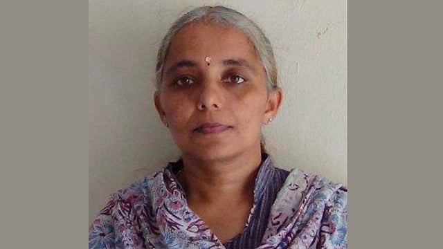 കാഞ്ഞിരക്കാടാണ് സംഭവം. കാലടി സംസ്കൃത സര്വകലാശാലയിലെ പ്രൊഫസ്സറായ സംഗമേശന് കെ എം ആണ് ഭര്ത്താവ്. ഇടതുപക്ഷ അധ്യാപക സംഘടനയായ എകെജിസിടിയുടെ സജീവ പ്രവര്ത്തകയാണ്. തലശേരി സ്വദേശിനിയാണ്