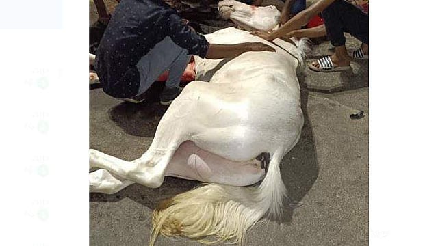 ചൊവ്വാഴ്ച രാത്രി തൊട്ടാപ്പില് വച്ചാണ് കുതിരയെ കാറിടിച്ചത്. ചാവക്കാട് ബ്ലാങ്ങാട് ബീച്ചില് സവാരി കഴിഞ്ഞ് മടങ്ങുകയായിരുന്ന കുതിരയ്ക്ക് വൈകുന്നേരം ഏഴരക്ക് തൊട്ടാപ്പ് ബദര് പള്ളിക്കടുത്താണ് അപകടം ഉണ്ടായത്. ഇടിയേറ്റ കുതിര കാറിനു മുകളിലേക്ക് വീണതിനെ തുടര്ന്ന് കാറിന്റെ മുന്ഭാഗം പൂര്ണ്ണമായും തകര്ന്നു.