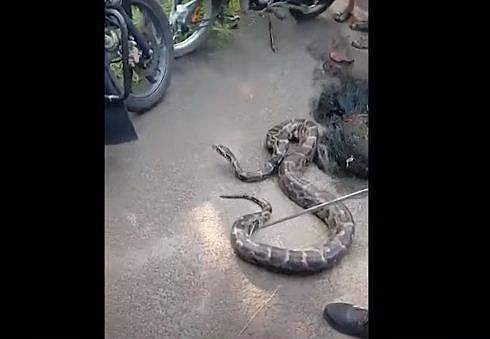 രാവിലെ 7.30 ഓടെ മീൻ വല ഉയർത്തിയപ്പോഴാണ് പാമ്പിനെ കണ്ടത്. തുടർന്ന് പാറമ്പുഴയിലെ വനംവകുപ്പ് അധികൃതരെ വിവരമറിയിച്ചു. ഇവർ എത്തി നാട്ടുകാരുടെ സഹായത്തോടെ പാമ്പിനെ കൊണ്ടുപോയി. ഏതെങ്കിലും വനമേഖലയിലേക്ക് പെരുമ്പാമ്പിനെ തുറന്ന് വിടാനാണ് അധികൃതരുടെ തീരുമാനം.