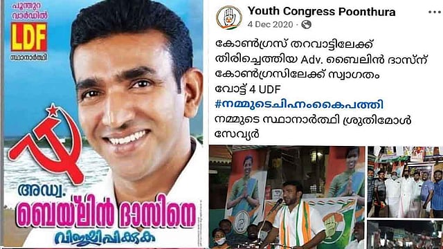 അതേസമയം, സിപിഎം നേതാക്കള്ക്ക് എതിരെ രൂക്ഷമായ അരോപണങ്ങള് ഉന്നയിച്ച് ബെയ്ലിന് ദാസ് കോണ്ഗ്രസ് പ്രവേശനം പ്രഖ്യാപിക്കുന്ന വിഡിയോ ഉള്പ്പെടെ സോഷ്യല് മീഡിയയില് ലഭ്യമാണ്. യൂത്ത് കോണ്ഗ്രസ് പൂന്തുറ മണ്ഡലം കമ്മിറ്റിയും ബെയ്ലിന് ദാസിനെ സ്വാഗതം ചെയ്യുന്ന പോസ്റ്റുകള് പങ്കുവച്ചിട്ടുണ്ട്. യുഡിഎഫ് സ്ഥാനാര്ത്ഥിക്ക് വോട്ട് അഭ്യര്ത്ഥിക്കുന്ന ഫോട്ടോകള് ഉള്പ്പെടെയാണ് പോസ്റ്റുകള്.