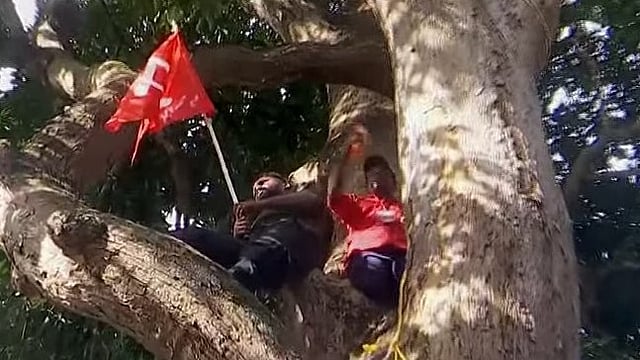 വികെ പ്രശാന്ത് മേയറായി ഇരുന്നപ്പോളാണ് ഇവരെ മാലിന്യ നിര്മാര്ജനത്തിനായി നിയോഗിച്ചത്. മേയര് ആര്യ രാജേന്ദ്രൻ വിളിച്ച ചര്ച്ചയില് ശുചീകരണ തൊഴിലാളികളാക്കാമെന്ന് ഉറപ്പ് നല്കിയതാണ്. എന്നാല് ആ ഉറപ്പ് അധികാരികള് പാലിച്ചില്ലെന്നും തൊഴിലാളികള് ആരോപിച്ചു. തൊഴിലാളി ദ്രോഹമാണ് നടക്കുന്നതെന്നും സമരവുമായി മുന്നോട്ട് പോകാനാണ് തീരുമാനമെന്നും തൊഴിലാളികൾ അറിയിച്ചു. പൊലീസും ഫയര്ഫോഴ്സും സ്ഥലത്തെത്തി തൊഴിലാളികളെ താഴെയിറക്കാനുള്ള ശ്രമം ആരംഭിച്ചു.