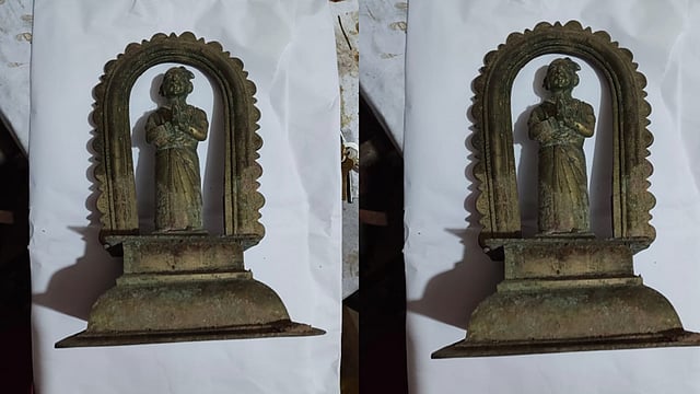 കൊച്ചി: മൂന്നര പതിറ്റാണ്ട് മുമ്പ് കളമശേരി ഏലൂര് കിഴക്കുംഭാഗം ദേവി ക്ഷേത്രത്തില് നിന്ന് നഷ്ടപ്പെട്ടെന്ന് കരുതിയ പഞ്ചലോഹ വിഗ്രഹം തിരിച്ചുകിട്ടി. ജോത്സ്യന് മറ്റം ജയകൃഷ്ണ പണിക്കരുടെ കാര്മികത്വത്തില് അഷ്ടമംഗല്യ പ്രശ്നം നടക്കവെ രണ്ട് മുത്തപ്പന്മാര് ക്ഷേത്രത്തില് ഉണ്ടെന്ന് സൂചിപ്പിച്ചപ്പോള് 72 വയസുള്ള ലീലാ കേശവനാണ് സ്റ്റോര് റൂമിലെ അലമാരയില് ഒരു വിഗ്രഹം ഇരിക്കുന്നുണ്ടെന്ന് പറഞ്ഞത്. ഇപ്പോഴത്തെ ക്ഷേത്രം ഭാരവാഹികള് അടക്കം ആര്ക്കും ഇക്കാര്യം അറിയില്ലായിരുന്നു.