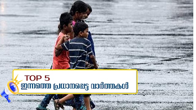 വരും ദിവസങ്ങളിൽ സംസ്ഥാനത്തു വ്യാപകമായ മഴയ്ക്ക് (Heavy rain) സാധ്യതയെന്ന് കേന്ദ്ര കാലാവസ്ഥ വകുപ്പ് അറിയിച്ചു. ഇന്ന് മൂന്ന് ജില്ലകളിൽ റെഡ് അലർട്ട്. 11 ജില്ലകളിൽ ഓറഞ്ച് മുന്നറിയിപ്പുമുണ്ട്. കണ്ണൂർ, കാസർക്കോട്, ഇടുക്കി ജില്ലകളിലാണ് റെഡ് അലർട്ട്. തിരുവനന്തപുരം, കൊല്ലം, പത്തനംതിട്ട, ആലപ്പുഴ, കോട്ടയം, എറണാകുളം, തൃശൂർ, പാലക്കാട്, മലപ്പുറം, കോഴിക്കോട്, വയനാട് ജില്ലകളിലാണ് ഓറഞ്ച് അലർട്ട് പ്രഖ്യാപിച്ചത്. സംസ്ഥാനത്ത് അതിതീവ്ര മഴ തുടരുന്ന സാഹചര്യത്തിൽ 9 ജില്ലകളിൽ ഇന്ന് വിദ്യാഭ്യാസ സ്ഥാപനങ്ങൾക്ക് അവധി (School Holiday) പ്രഖ്യാപിച്ചു. ഇന്നത്തെ അഞ്ച് പ്രധാന വാര്ത്തകള്(top 5 news).