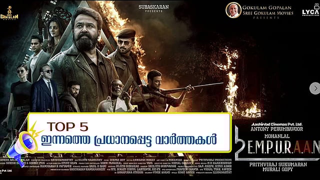 വിവാദത്തെ തുടര്ന്ന് എംപുരാന് സിനിമയിലെ ചില ഭാഗങ്ങള് നീക്കും. വിമര്ശനത്തിനിടയായ ഭാഗങ്ങളില് മാറ്റം വരുത്തിയ പതിപ്പ് അടുത്തായഴ്ച തീയറ്ററില് എത്തും. നിര്മാതാക്കള് നിര്ദേശിച്ചതു പ്രകാരമാണ് മാറ്റമെന്നാണ് സൂചന. ഗുജറാത്ത് കലാപം ഉള്പ്പെടെയുള്ള വിഷയങ്ങള് പ്രതിപാദിക്കുന്ന സിനിമയ്ക്കെതിരെ സംഘപരിവാര് കേന്ദ്രങ്ങള് കടുത്ത വിമര്ശനം ഉന്നയിച്ചിരുന്നു. ഇന്നത്തെ 5 പ്രധാന വാര്ത്തകള്