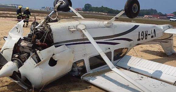 രാവിലെ 11 മണിയോടെയാണ് സംഭവം. ടേക്ക് ഓഫിനിടെ നിയന്ത്രണം വിടുകയായിരുന്നുവെന്നാണ് വിമാനത്താവള അധികൃതർ അറിയിച്ചത്. പൈലറ്റ് മാത്രമാണ് വിമാനത്തില്‍ ഉണ്ടായിരുന്നത്. പൈലറ്റിന് സാരമായ പരിക്കുകളില്ല. പൈലറ്റിനെ ആശുപത്രിയില്‍ പ്രവേശിപ്പിച്ചു.