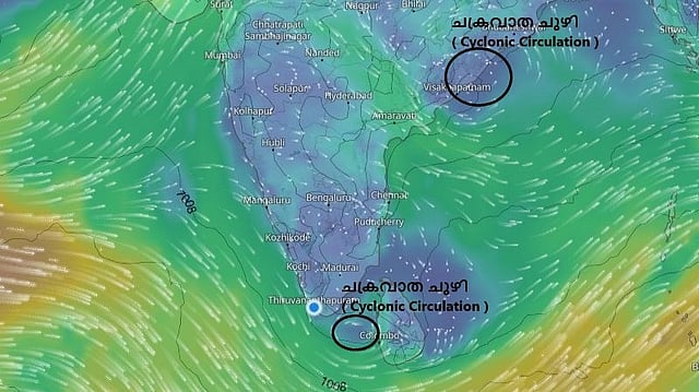 മാന്നാര് കടലിടുക്കിനു മുകളിലാണ് ഒരു ചക്രവാതച്ചുഴി സ്ഥിതി ചെയ്യുന്നത്. തെക്കന് ഒഡീഷയ്ക്കും വടക്കന് ആന്ധ്രാപ്രദേശ് തീരത്തിനും മുകളിലായി ഉയര്ന്ന ലെവലില് മറ്റൊരു ചക്രവാതച്ചുഴിയും നിലനില്ക്കുന്നുണ്ട്. ഇതിന്റെ സ്വാധീനഫലമായാണ് സംസ്ഥാനത്ത് വരുംദിവസങ്ങളില് മഴ ലഭിക്കുക എന്നും കാലാവസ്ഥ വകുപ്പിന്റെ മുന്നറിയിപ്പില് പറയുന്നു.