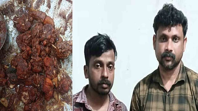 കണ്ണൂര് : പെരുമ്പാമ്പിനെ കൊന്ന് ഇറച്ചി പാകം ചെയ്ത് കഴിച്ച രണ്ടുപേര് പിടിയില്. മാതമംഗലം മുണ്ടപ്രം സ്വദേശികളായ ഉറുമ്പില് ഹൗസില് യു പ്രമോദ് (40), ചന്ദനംചേരി ഹൗസില് സി ബിനീഷ് (37) എന്നിവരാണ് വനംവകുപ്പിന്റെ പിടിയിലായത്.