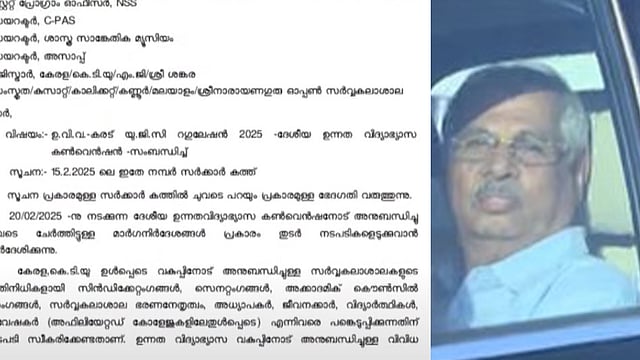 തിരുവനന്തപുരം: യുജിസി കരട് കൺവെൻഷനുമായി ബന്ധപ്പെട്ട സർക്കുലറിൽ ഗവർണർ അമർഷം രേഖപ്പെടുത്തിയതിന് പിന്നാലെ തിരുത്തുമായി സംസ്ഥാന സർക്കാർ. യുജിസി കരടിന് "എതിരായ" എന്ന പരാമർശം നീക്കി, പകരം യുജിസി റെഗുലേഷൻ - ദേശീയ ഉന്നത വിദ്യാഭ്യാസ കൺവെൻഷൻ എന്നാക്കി മാറ്റി. സർക്കുലർ തിരുത്തണമെന്ന് ഗവർണർ സർക്കാരിനോട് ആവശ്യപ്പെട്ടതിന് പിന്നാലെയാണ് സർക്കാരിൻ്റെ പരാമർശം നീക്കിയത്.