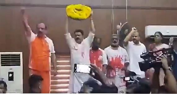 'മേയറെ കൊല്ലും, റീത്തുമായി പ്രതിപക്ഷ അംഗങ്ങള്‍; തൃശൂര്‍ നഗരസഭായോഗത്തില്‍ ബഹളം