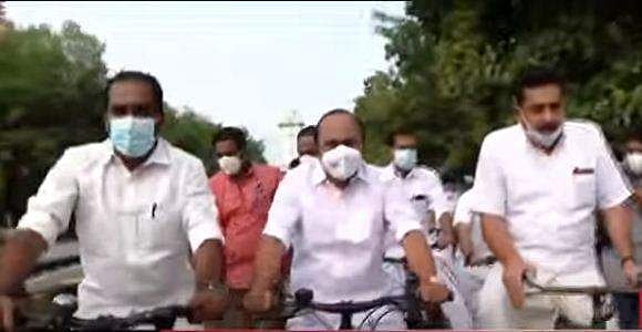 എംഎല്എ ഹോസ്റ്റലിന് മുന്നില് നിന്നാണ് എംഎല്എമാര് സൈക്കിള് ചവിട്ടി നിയമസഭയിലേക്ക് പോയത്. പി സി വിഷ്ണുനാഥ്, അന്വര് സാദത്ത്, അനൂപ് ജേക്കബ്, ഐ സി ബാലകൃഷ്ണന് തുടങ്ങിയ എംഎല്എമാര് പ്രതിഷേധത്തില് പങ്കെടുത്തു.