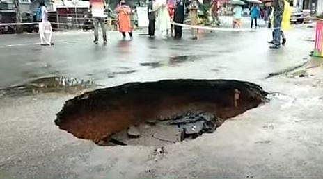 മൂവാറ്റുപുഴ പാലത്തിന് സമീപം രൂപപ്പെട്ട ഗര്‍ത്തം