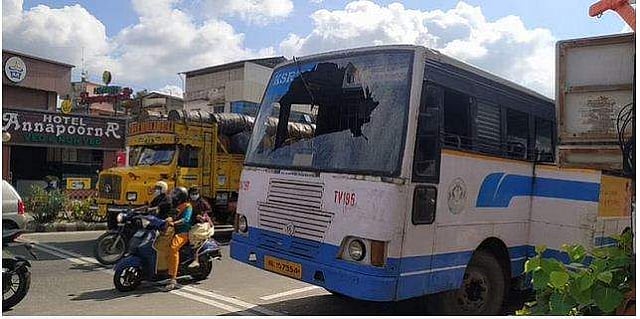 ആക്രമണത്തില്‍ തകര്‍ന്ന ബസ്‌