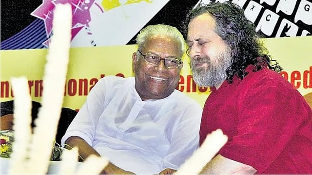 VS Achuthanandan and Free Software Foundation founder Richard Stallman at the inauguration of Free Software meet in Thiruvananthapuram in 2008 File Pic | Express
