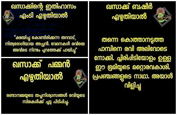 എംടി, പമ്മന്, ബഷീര് തുടങ്ങി നിരവധി എഴുത്തുകാരുടെ ഖസാക്കിന്റെ ഇതിഹാസം വേര്ഷനും മുജീബ് പങ്കുവച്ചു. ഇതിന് പിന്നാലെ നിരവധിപേര് ഇത് ഏറ്റുപിടിച്ച് രംഗത്തെത്തി. എംടിയില് തുടങ്ങി ജി സുധാകരനില് വരെ എത്തിനില്ക്കുകയാണ് ഖസാക്കിന്റെ ഇതിഹാസം മറ്റുള്ളവര് എഴുതിയാല് എങ്ങനെയിരിക്കുമെന്ന ട്രോളുകള്.