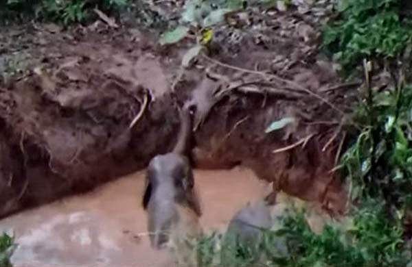 വെള്ളവും ചെളിയും നിറഞ്ഞ കുഴിയിലാണ് ആനയും കുഞ്ഞും അകപ്പെട്ടത്. നാട്ടുകാര് ഉടന് തന്നെ വിവരം വനം വകുപ്പിനെ അറിയിച്ചു. ജെസിബി ഉപയോഗിച്ച് വശം ഇടിച്ച് കാട്ടാനയെയും കുഞ്ഞിനെയും സുരക്ഷിതമായി രക്ഷപ്പെടുത്തി.