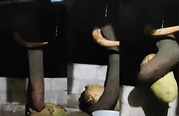 വീട്ടുപറമ്പിലെത്തിയ ആന വരാന്തയിൽ സൂക്ഷിച്ച ചക്ക അകത്താക്കി. സമീപമുണ്ടായിരുന്ന നായക്കൂട് ആന തകർത്തു.