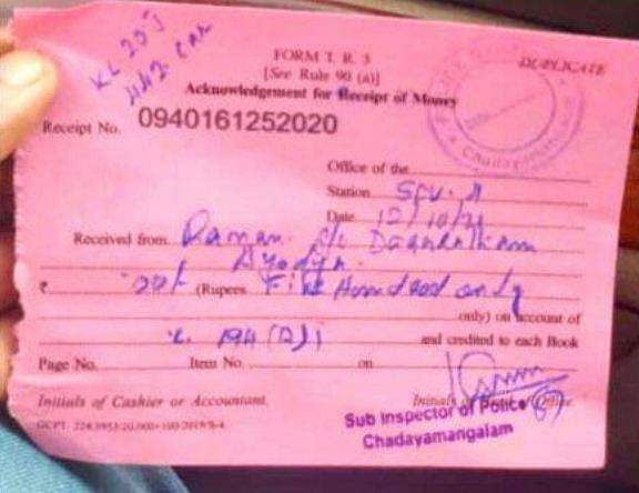 പൊലീസ് എഴുതിക്കൊടുത്ത രസീത്‌