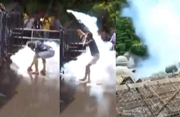 പൊലീസ് നിരത്തിവച്ച ബാരിക്കേഡിനു സമീപം നിന്ന് മുദ്രാവാക്യം വിളിക്കുകയായിരുന്നു പ്രവർത്തകർ. അതിനിടയിലേക്കാണ് കണ്ണീർ വാതക ഷെൽ എറിഞ്ഞത്. അതോടെ പ്രതിഷേധക്കാർ ചിതറിയോടി, എന്നാൽ കൂട്ടത്തിൽ ഒരു യൂത്ത് കോൺഗ്രസ് പ്രവർത്തകൻ നിലത്തു നിന്ന് ഷെൽ എടുത്ത് പൊലീസിനു നേരെ എറിയുകയായിരുന്നു. ഇതോടെ പൊലീസുകാർ പലവഴിക്ക് ചിതറിയോടി. ഇതിന്റെ വിഡിയോ സോഷ്യൽ മീഡിയയിൽ വൈറലാവുകയാണ്.