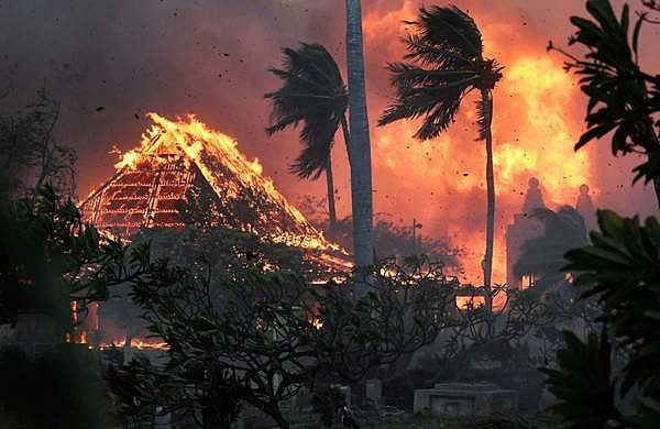 നഗരത്തിനു സമീപത്തായി വീശിയടിച്ച ചുഴലിക്കാറ്റ് കാട്ടുതീ പടർന്നുപിടിക്കാൻ കാരണമായി. ടൂറിസ്റ്റ് കേന്ദ്രമായ ലഹായിനയിൽ അടുത്തടുത്തായി നൂറുകണക്കിനു വീടുകളും വലിയ ഹോട്ടലുകളുമുണ്ട്. ഇവയിൽ മിക്കതും അഗ്നിക്കിരയായി.