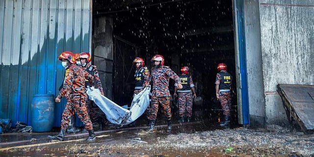 തലസ്ഥാനമായ ധാക്കയ്ക്ക് വെളിയില് രൂപ്ഗഞ്ചിലെ ഹാഷീം ഫുഡ് ആന്റ് ബിവറേജസ് ഫാക്ടറിയിലാണ് അപകടം ഉണ്ടായത്. വ്യാഴാഴ്ച ഉച്ചയോടെ ഉണ്ടായ തീപിടിത്തം മണിക്കൂറുകളോളം നീണ്ടുനിന്നതായാണ് റിപ്പോര്ട്ടുകള്. രാസവസ്തുക്കളും പ്ലാസ്റ്റിക് കുപ്പികളും സൂക്ഷിച്ചിരുന്ന താഴത്തെ നിലയില് നിന്നാണ് തീ പടര്ന്നത്.