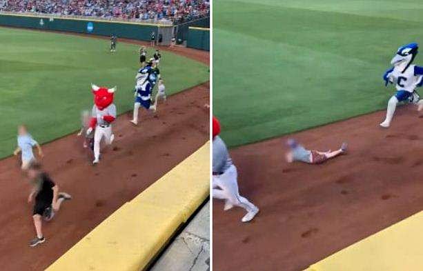 അമേരിക്കയിൽ നടന്ന ഒരു ബേസ്ബോൾ ടൂർണമെന്റിൽ അരങ്ങേറിയ ഓട്ടമത്സരത്തിനിടെ കാളത്തല വച്ച മാസ്കോട്ട് കുട്ടിയെ ഇടിച്ചിട്ടു. നെബ്രാസ്കയിലെ ഒമാഹയിൽ നടക്കുന്ന വാർഷിക ബേസ്ബോൾ ടൂർണമെന്റായ എൻസിഎഎ മെൻസ് കോളജ് വേൾഡ് സീരീസിലെ ഓട്ടമത്സരത്തിനിടെയാണ് കൂട്ടിയിടി നടന്നത്.
