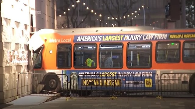 ലോസ് ഏഞ്ചല്സ്: യുഎസില് തോക്ക് ചൂണ്ടി ഡ്രൈവറെ ഭീഷണിപ്പെടുത്തി ബസ് തട്ടിയെടുത്ത ആള് നിരവധി വാഹനങ്ങളെ ഇടിച്ച് തെറിപ്പിച്ചു. ലോസ് ഏഞ്ചല്സ് കൗണ്ടി മെട്രോപൊളിറ്റന് ട്രാന്സിറ്റ് അതോറിറ്റി ബസില് ബുധനാഴ്ച രാത്രി 11:10 ഓടെയാണ് സംഭവം. തോക്കുമായി ഒരാള് ഡ്രൈവറെ ഭീഷണിപ്പെടുത്തുകയായിരുന്നുവെന്നാണ് പൊലീസ് പറയുന്നത്.