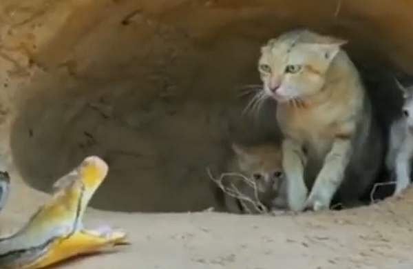 അതിനിടെ കുഞ്ഞുങ്ങളെ അതിവിദഗ്ധമായി പൂച്ച രക്ഷിക്കുന്നതും കാണാം. പാമ്പിന്റെ ഓരോ ചുവടും സൂക്ഷ്മമായി നിരീക്ഷിച്ചാണ് പൂച്ചയുടെ പ്രത്യാക്രമണം. ഒടുവില് പെരുമ്പാമ്പിനെ കടിച്ചെടുത്ത് മാറ്റിയാണ് കുഞ്ഞുങ്ങളെ പൂച്ച രക്ഷിച്ചത്.