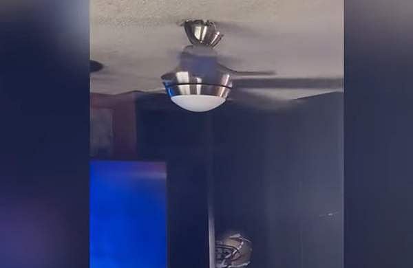 കറങ്ങുന്ന ഫാനിന്റെ മുകളില് പാമ്പ് തല ഉയര്ത്തി നോക്കുന്നതാണ് വീഡിയോയുടെ തുടക്കം. ഫാനിന്റെ ലീഫില് തട്ടി പാമ്പ് തെറിച്ച് വീഡിയോ ഷൂട്ട് ചെയ്യുന്ന ആളുടെ ദേഹത്തേയ്ക്ക് വീഴുന്നിടത്താണ് വീഡിയോ അവസാനിക്കുന്നത്.
