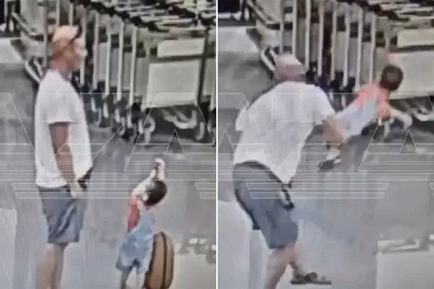 Appalling footage has emerged showing the moment an 18-month-old boy was picked up and hurled headfirst into the floor by a male tourist in the arrivals hall of Moscow Airport.