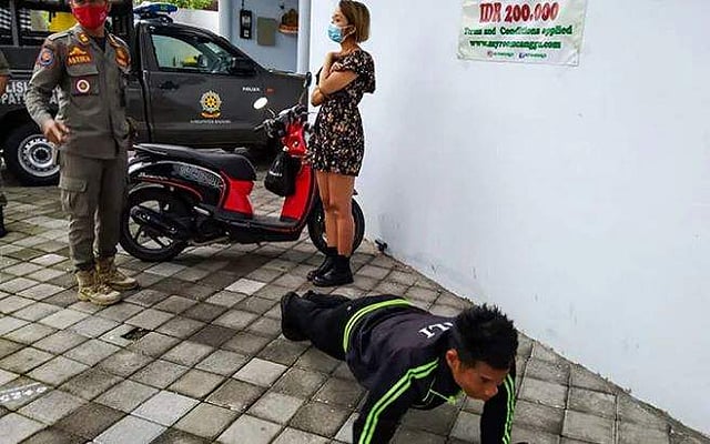 അടുത്തിടെ ബാലിയിൽ മാത്രം മാസ്ക് ധരിക്കാത്ത നൂറോളം പേരെയാണ് സുരക്ഷാ ഉദ്യോഗസ്ഥർ പിടികൂടിയത്. ഇതിൽ 70 പേരിൽ നിന്ന് ഏഴ് ഡോളർ വീതം പിഴ ഈടാക്കി. ബാക്കി 30 പേർ കൈയിൽ പണമില്ലെന്ന് പറഞ്ഞതോടെയാണ് ശിക്ഷ പുഷ്അപ്പിന്റെ രൂപത്തിലായത്. മാസ്ക് ധരിക്കാത്തവർ 50 എണ്ണവും മാസ്ക് ശരിയായി ധരിക്കാത്തവർ 15 എണ്ണം വീതവും പുഷ് അപ് ചെയ്യണമെന്നായിരുന്നു നിർദേശം.