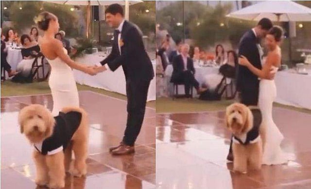 വിവാഹശേഷം വധുവും വരനും ഒന്നിച്ച് അതിഥികള്ക്ക് മുന്നില് ആദ്യമായി നൃത്തം ചെയ്യുമ്പോഴായിരുന്നു സംഭവം. ഇരുവര്ക്കുമൊപ്പം വളര്ത്തുനായയും സ്റ്റേജിലുണ്ടായിരുന്നു. മുഖത്തോടുമുഖം നോക്കി പ്രണയാര്ദ്രമായി ചുവടുവയ്ക്കുന്നതിനിടയില് ഇവര്ക്കിടയിലേക്ക് നായ നുഴഞ്ഞുകയറിയതാണ് എല്ലാവരെയും ചിരിപ്പിക്കുന്നത്. വളരെ ക്യൂട്ട് ആയ രംഗം ഏറ്റെടുത്തിരിക്കുകയാണ് വിഡിയോ കണ്ടവരെല്ലാം.