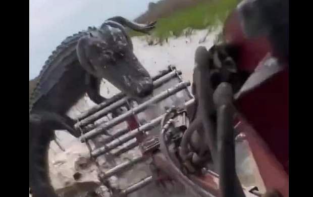 പെട്ടെന്നുണ്ടായ പ്രകോപനത്തിൽ മുതല യന്ത്രത്തിന്റെ മൂർച്ചയേറിയ ബ്ലേഡുകളിൽ സ്വന്തം പല്ലുകൾ കൊണ്ട് കടിക്കുകയായിരുന്നു. മുതലയെ കണ്ട പരിഭ്രാന്തിയിൽ യന്ത്രം നിർത്തിയ കർഷകൻ പെട്ടെന്ന് തന്നെ മനസ്സാന്നിധ്യം വീണ്ടെടുത്ത് അത് പിന്നോട്ട് ഓടിച്ചുനീക്കി. എന്നാൽ അപ്പോഴും യന്ത്ര ബ്ലേഡിൽ നിന്നും കടിവിടാതിരുന്ന മുതല, വാഹനം പിന്നോട്ടെടുത്തതോടെ വായുവിലേക്ക് ഉയർന്നുപൊങ്ങുന്നതും കാണാം.