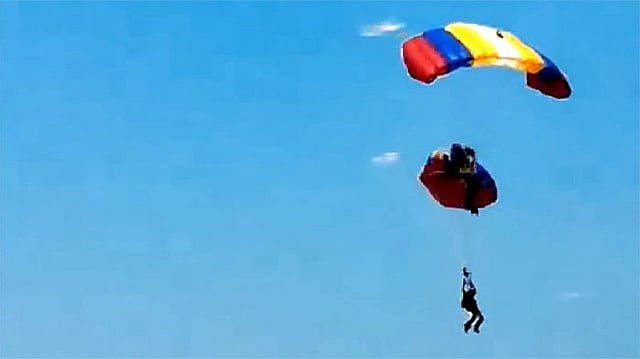 രണ്ടുപേരുടെ പാരച്യൂട്ടുകള് പരസ്പരം കൂട്ടിയുടക്കുകയായിരുന്നു. ഇവര് വിമാനത്തില് നിന്ന് താഴോട്ട് ചാടിയപ്പോള് പാരച്യൂട്ടുകള് പൂര്ണമായി തുറന്നില്ല. രണ്ട് സൈനികര് കെട്ടിടത്തിന് മുകളിലാണ് വീണത്. മറ്റുള്ളവര് ഗ്രൗണ്ടിലുമാണ് വീണത്. ഇവരെ സമീപത്തെ ആശുപത്രിയില് പ്രവേശിപ്പിച്ചു.