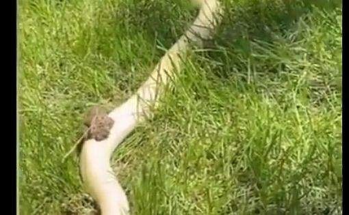 പെരുമ്പാമ്പിന്റെ പുറത്തു കയറി തവളയുടെ 'സവാരി', അമ്പരപ്പ് (വീഡിയോ)