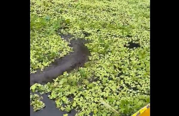ബോട്ട് യാത്രയാണ് പശ്ചാത്തലം. ബോട്ടില് യാത്ര ചെയ്യുന്നതിനിടെ വെള്ളത്തിലൂടെ പാഞ്ഞുപോകുന്ന അനാക്കോണ്ടയുടെ ദൃശ്യങ്ങളാണ് അമ്പരപ്പ് ഉളവാക്കുന്നത്. ബോട്ടിന് അരികിലൂടെയാണ് അനാക്കോണ്ട കടന്നുപോയത്. കൂറ്റന് അനാക്കോണ്ടയുടെ രൂപമാണ് ദൃശ്യങ്ങളിലുള്ളത്.