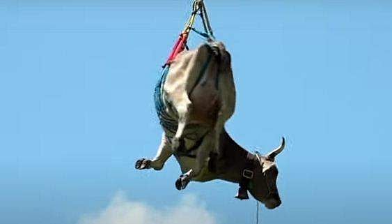 ആല്പൈന് പര്വതനിരകള്ക്ക് മുകളിലെത്തിയ ഒരുകൂട്ടം പശുക്കളെ ഹെലികോപ്റ്ററുകളുടെ സഹായത്തോടെ താഴ്വരയില് എത്തിച്ചു. വേനല്ക്കാലമായതോടെ പുല്ലുമേയാനാണ് പശുക്കള് ആല്പൈന് പര്വതനിര കയറിയത്. പുല്ലുമേയുന്നതിനിടെ പരിക്ക് പറ്റി താഴേക്ക് വരാന് കഴിയാതിരുന്ന പശുക്കളെയാണ് രക്ഷിച്ചത്. പരുക്കു പറ്റിയ ഒരു ഡസനോളം പശുക്കളെയാണ് ഹെലികോപ്റ്ററില് ബന്ധിപ്പിച്ച് താഴ്വരയിലെത്തിച്ചത്.