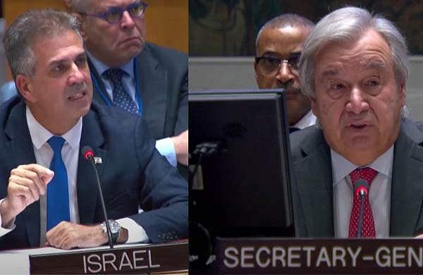 യുഎൻ മേധാവിയുടെ ഹമാസ് പരാമർശം ഇസ്രയേല് വിദേശകാര്യ മന്ത്രി ഏലി കോഹനെ പ്രകോപിപ്പിച്ചു. യുഎന് സെക്രട്ടറി ജനറല് നിങ്ങള് ഏത് ലോകത്താണ് ജീവിക്കുന്നതെന്ന് കോഹൻ ചോദിച്ചു. ഗുട്ടെറസ് രാജി വെക്കണമെന്നും ഇസ്രയേല് ആവശ്യപ്പെട്ടു.
