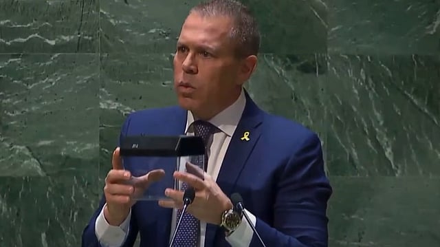പ്രമേയത്തെ യുഎന് ചാര്ട്ടറിന്റെ 'വ്യക്തമായ ലംഘനം' എന്ന് വിളിച്ച ഇസ്രയേല് പ്രതിനിധി എര്ദാന് കഴിഞ്ഞ മാസം സെക്യൂരിറ്റി കൗണ്സിലില് യുഎസ് വീറ്റോ അട്ടിമറിച്ചതായി പറഞ്ഞു. യുഎന് ചാര്ട്ടര് കീറിമുറിക്കുന്നതിനിടയില് ജനറല് അസംബ്ലി അംഗങ്ങള്ക്കായി താന് കണ്ണാടി ഉയര്ത്തി പിടിക്കുകയാണെന്ന് എര്ദാന് പറഞ്ഞു.
