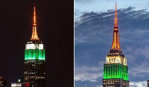 തിളങ്ങും. ഇതിന് പുറമേ ടൈം സ്ക്വയറില് പരസ്യ ബോര്ഡില് കൂറ്റന് ത്രിവര്ണ പതാക പ്രദര്ശിപ്പിക്കുമെന്നും അസോസിയേഷന് അറിയിച്ചു.