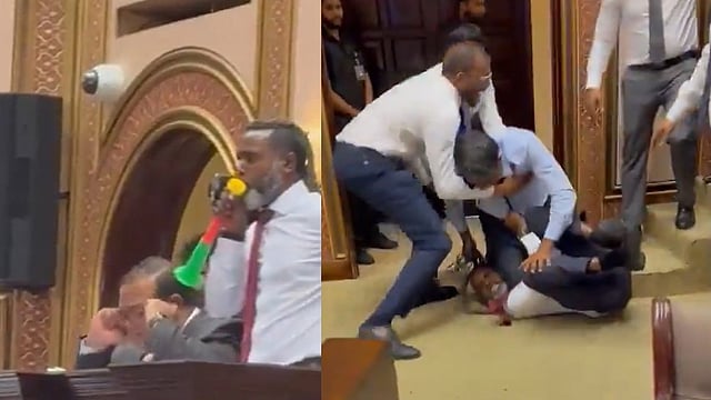 മുയിസുവിന്റെ മന്ത്രിസഭയിലെ നാല് അംഗങ്ങള്ക്ക് അംഗീകാരം നല്കുന്നതുമായി ബന്ധപ്പെട്ട് നടന്ന വോട്ടടുപ്പിനിടെയാണ് സംഘര്ഷം. സംഘര്ഷം നടക്കുന്നതിന്റെ വീഡിയോ പുറത്തുവന്നിട്ടുണ്ട്. പാര്ലമെന്റില് ഗണ്യമായ ഭൂരിപക്ഷമുള്ള മാലിദ്വീപ് ഡെമോക്രാറ്റിക് പാര്ട്ടിയും (എംഡിപി) ഡെമോക്രാറ്റുകളും പ്രത്യേക ക്യാബിനറ്റ് അംഗങ്ങള്ക്കുള്ള അംഗീകാരം തടയാന് കൂട്ടായി തീരുമാനിച്ചു. എന്നാല് പ്രതിപക്ഷ എംപിമാര് പാര്ലമെന്റില് പ്രവേശിക്കുന്നത് ഭരണകക്ഷി എംപിമാര് തടയുകയായിരുന്നു. സ്പീക്കറുടെ ചേംബറില് കയറി വോട്ടിംഗ് കാര്ഡുകളും ഭരണകക്ഷി എംപിമാര് എടുത്തുകൊണ്ട് പോയി. ഇതേത്തുടര്ന്നാണ് സംഘര്ഷം ഉടലെടുത്തത്.
