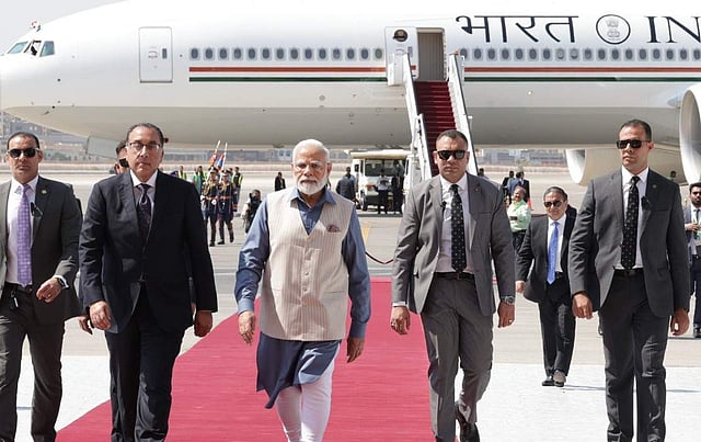 പ്രധാനമന്ത്രി നരേന്ദ്ര മോദി രണ്ടു ദിവസത്തെ സന്ദര്ശനത്തിനായി ഈജിപ്തിലെത്തി. യുഎസ് സന്ദര്ശനം പൂര്ത്തിയാക്കിയ ശേഷം കയ്റോയില് വിമാനമിറങ്ങിയ മോദിയെ, ഈജിപ്ഷ്യന് പ്രധാനമന്ത്രി മുസ്തഫ മദ്ബൂലിയുടെ നേതൃത്വത്തില് ഔദ്യോഗികമായി സ്വീകരിച്ചു. പ്രധാനമന്ത്രി പദത്തിലെത്തിയശേഷം നരേന്ദ്ര മോദിയുടെ ആദ്യ ഈജിപ്ത് സന്ദര്ശനമാണിത്. ഒരു ഇന്ത്യന് പ്രധാനമന്ത്രി ഔദ്യോഗിക സന്ദര്ശനത്തിനായി ഈജിപ്തിലെത്തുന്നത് 26 വര്ഷത്തെ നീണ്ട ഇടവേളയ്ക്കു ശേഷമാണെന്ന പ്രത്യേകതയുമുണ്ട്.