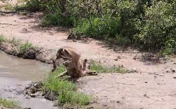 ജീവന് വേണ്ടി മുതലയുമായി ജീവന്മരണ പോരാട്ടം നടത്തി വിജയിച്ച ഇമ്പാല ഒരിക്കലും കരുതി കാണില്ല, വരാനിരിക്കുന്നത് ഇതിലും വലിയ ദുർവിധിയാണ് എന്ന്. മുതലയുടെ വായിൽ നിന്നും കഷ്ടിച്ച് രക്ഷപ്പെട്ട ഇമ്പാല നിമിഷങ്ങൾക്കകം പുള്ളിപ്പുലിയുടെ ഇരയാകുന്ന വീഡിയോ വൈറലാകുന്നു. അപൂർവമായി മാത്രം ലഭിക്കുന്ന ഈ വിഡിയോ ഇപ്പോൾ സമൂഹമാധ്യമങ്ങളിൽ വ്യാപകമായാണ് പ്രചരിക്കുന്നത്.